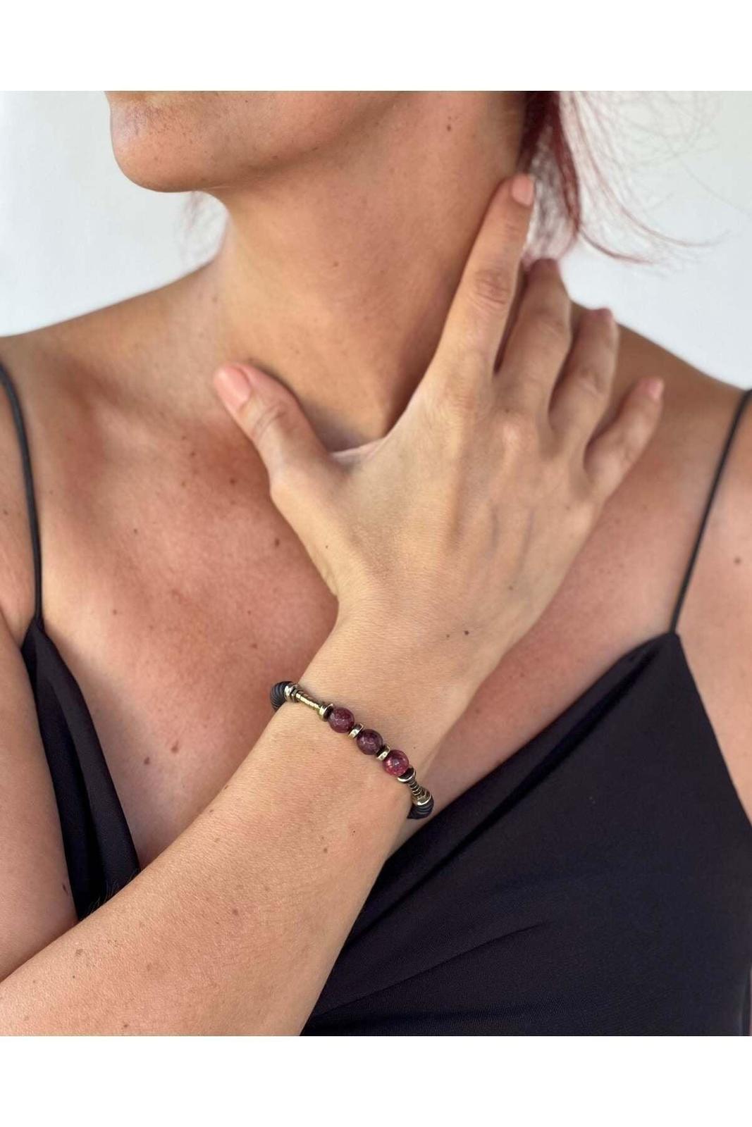 Red Hematite & Lava Stone Unisex Bracelet and similar items