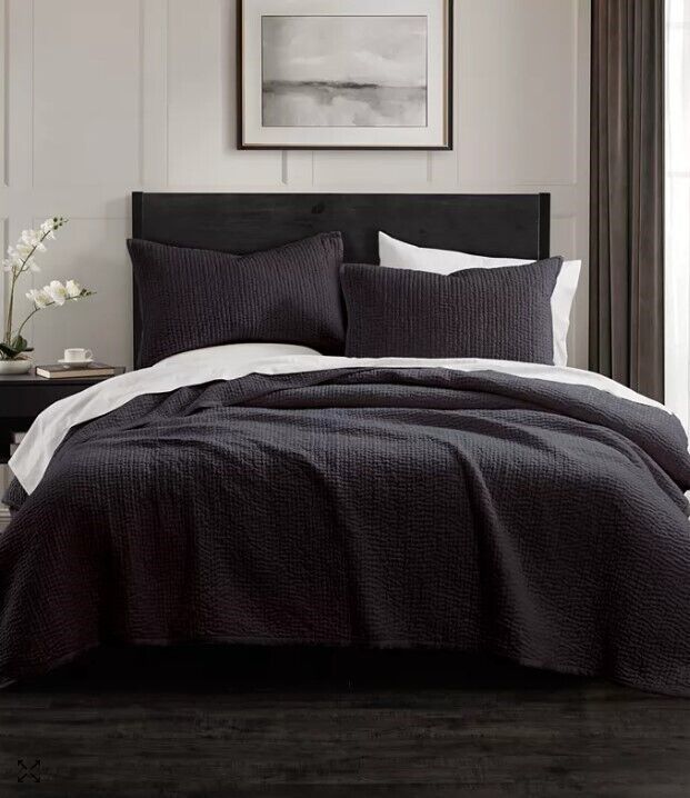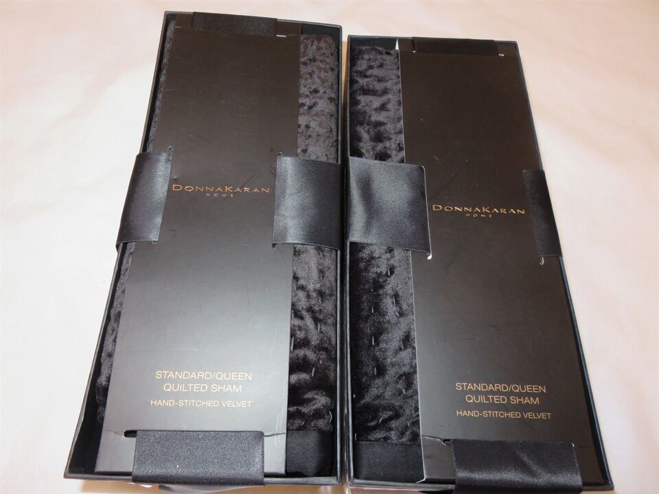 2 Donna Karan Soft Velvet Handstitched Quilt Standard Shams Black