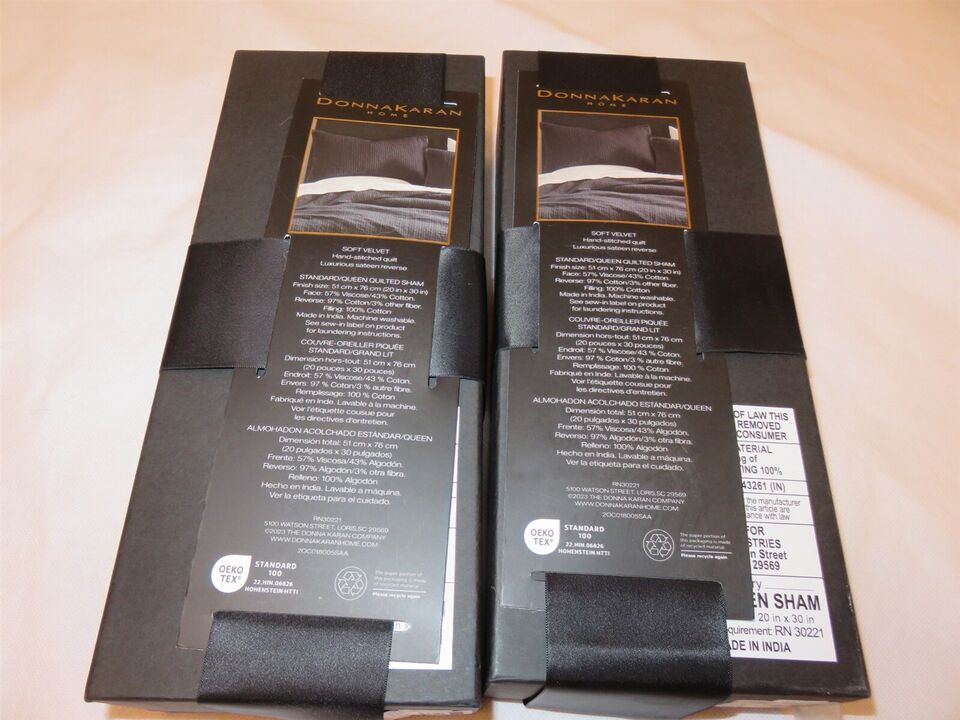 2 Donna Karan Soft Velvet Handstitched Quilt Standard Shams
