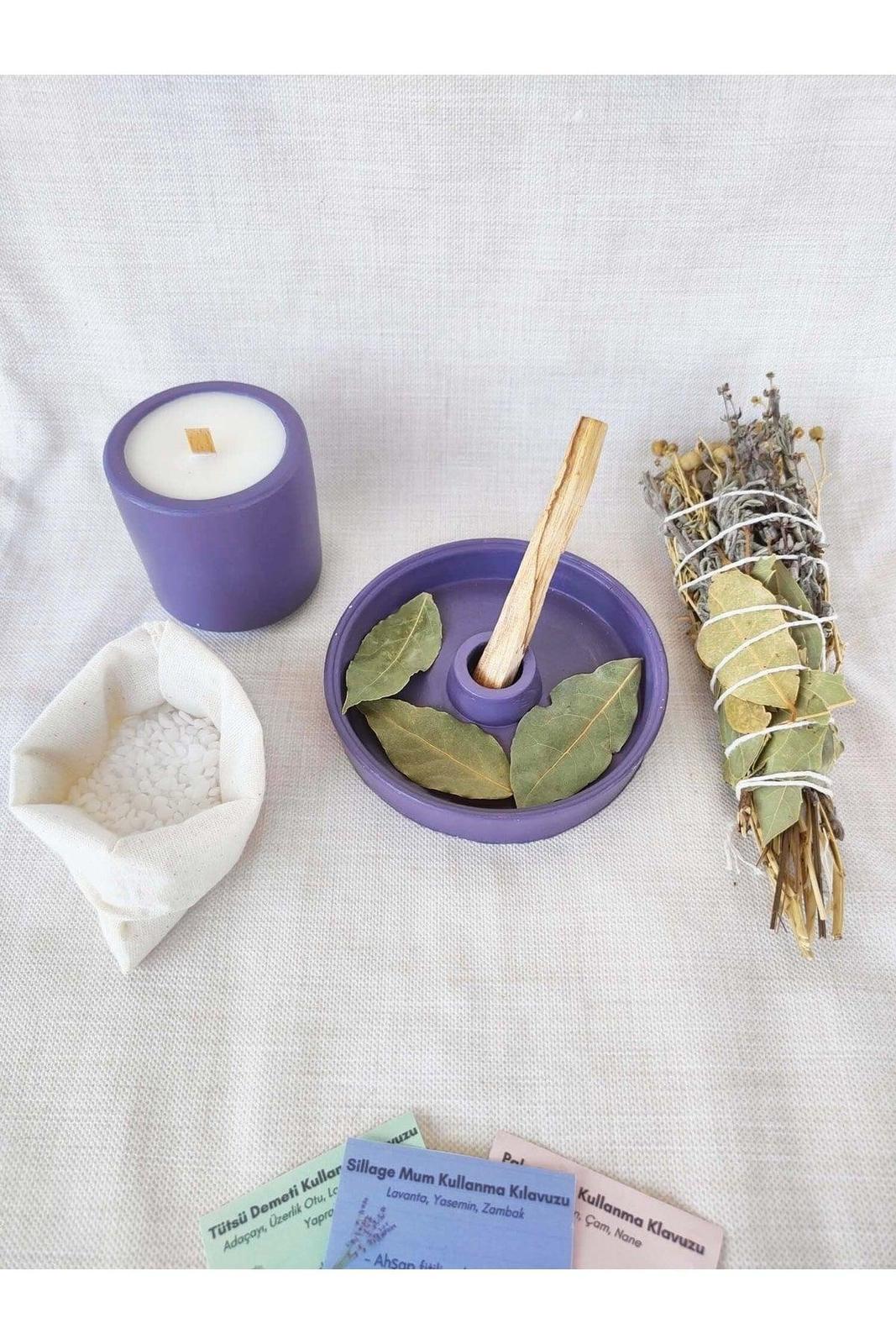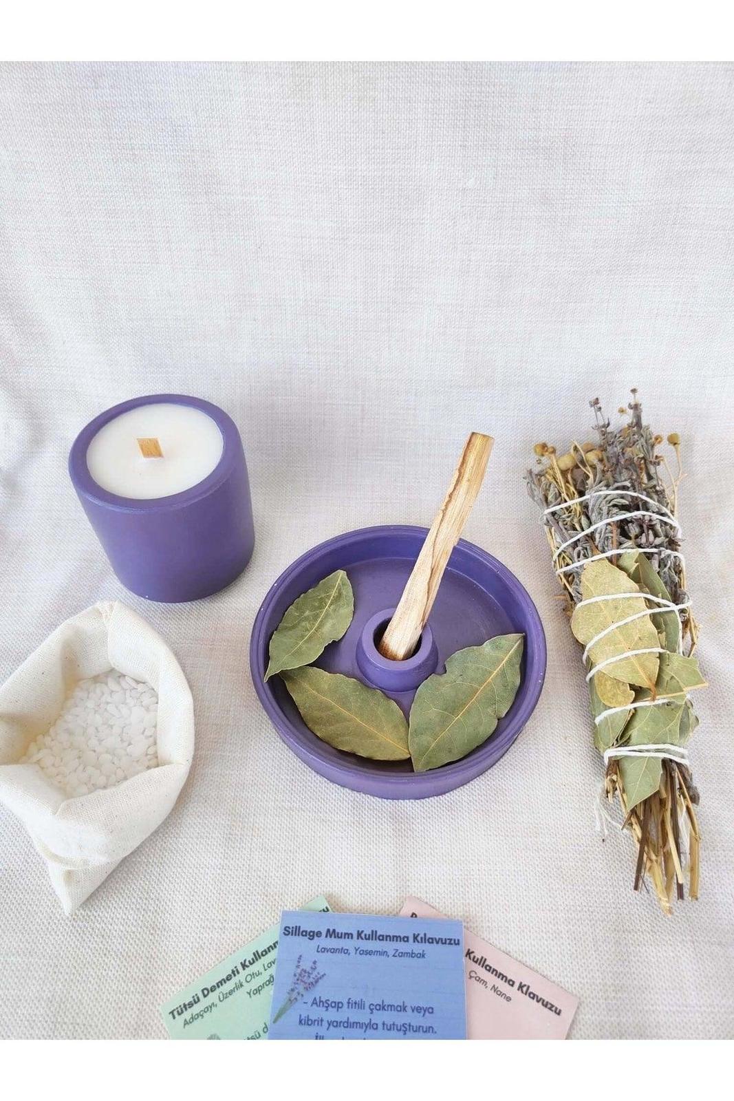 The purification incense set, designed to purify from negative energies and provide a peaceful ambiance, is a great gift alternative for both yourself and your loved ones. It is produced in a variety of colors and fragrances for every taste. The scent of candles in each color is different from each other. Purple: Lavender, Jasmine, Lily Cinnamon: Oud Wood Coral: Cherry Blossom, Cedar Wood Mustard-Yellow: Ylang Ylang and Sandalwood. If you want a color and odor change, you can contact us by contacting us through the question and answer section. Product Contents: Energy incense consisting of 1 handmade concrete incense holder, 1 concrete soy wax, 8-10gr Palo Santo incense, Sage-Harmony-Lavender, Laurel Leaf and Rock Salt. All materials have been prepared by considering the most powerful purification methods in purification from negative energies. The Palo Santo used is certified and supplied from Peru. You can either keep the rock salt in its pouch or use it by pouring it into the incense plate. It has the feature of preventing negative energy and radiation. While the Sage-Lavender-Village incense bundle cleans your space from negative energies, it also has the feature of increasing the energy of abundance and fertility. User manuals are sent with the product, and delivery is provided in the form of gift packages. More than 10 stocks are offered to be sold at the campaign price. The listed price is valid until 17 October 2023.