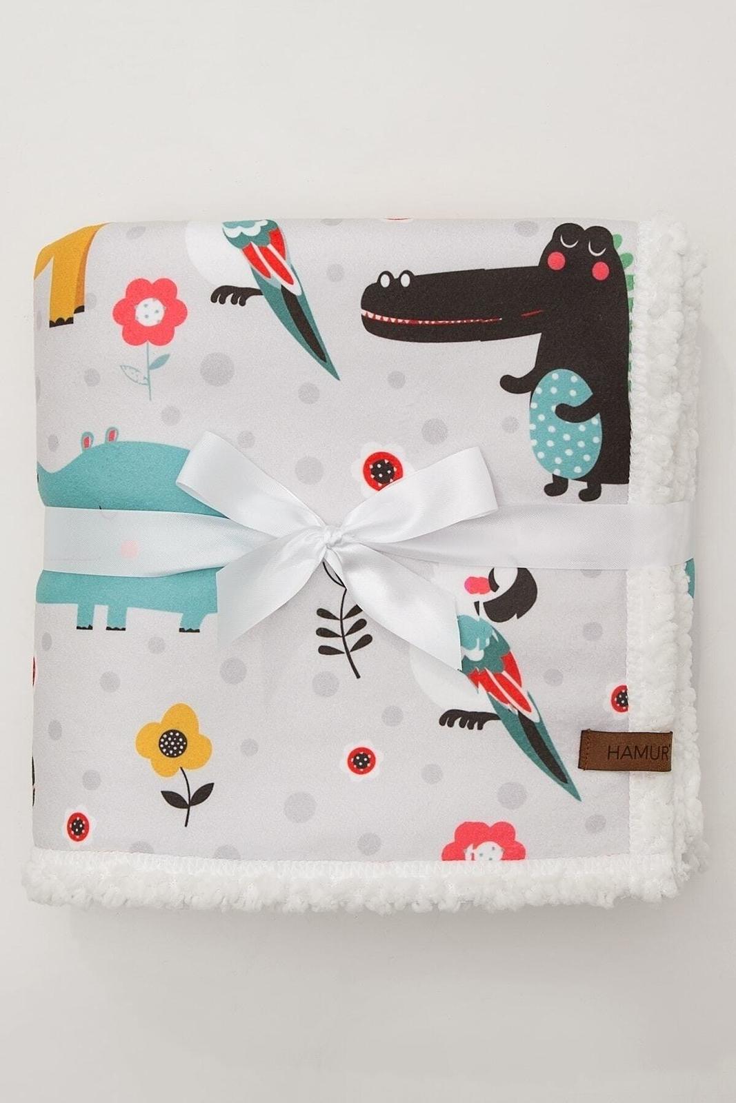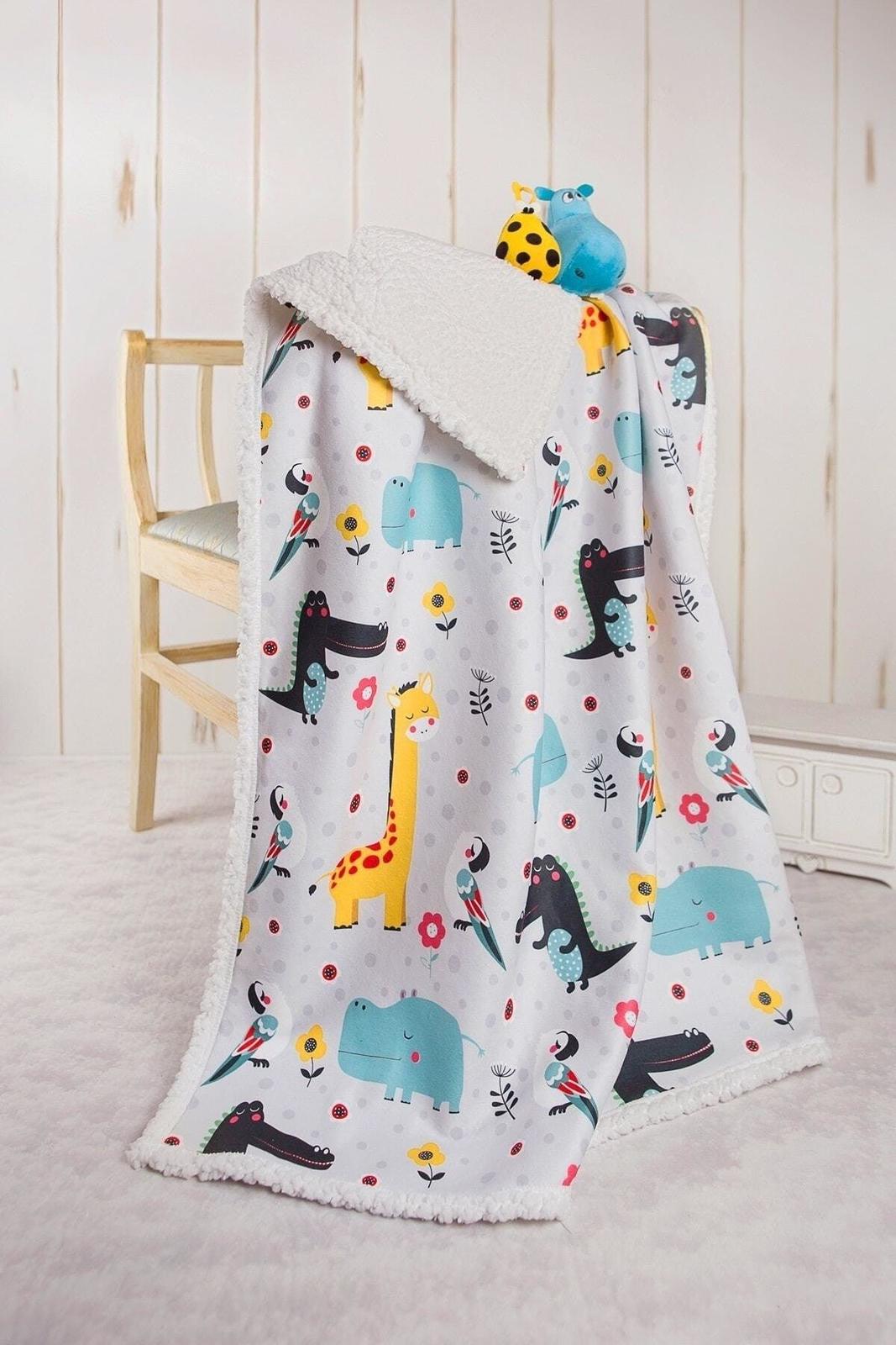 Fluffy Baby Blanket Size: 80x100 cmPrinted Face 100% Micro Fleece Inner Side 100% Sherpa Fabric Produced byHamur in Turkey. This blanket, knitted with ultra-soft and fluffy micro yarn, is ideal for both sleep and stroller rides. You can use the dough Fluffy baby blankets for multiple purposes, such as sleeping, swaddling, play mat, stroller cover, stroller cover. It has cute prints on super soft micro fleece fabric. Dough Fluffy baby blankets are light and ergonomic. While it cuts the wind and cold in both spring and winter months, it also prevents the baby from sweating with its airy structure. More than 50 stocks are offered to be sold at the campaign price.