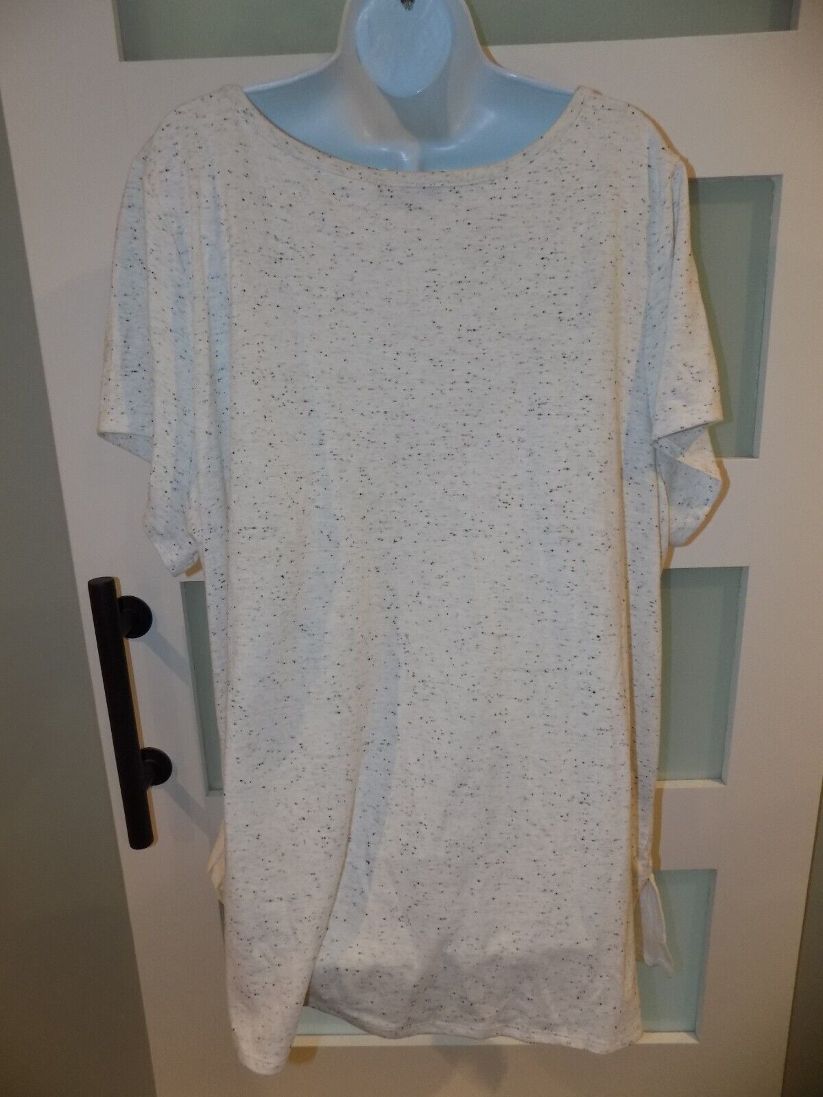 Lane Bryant Shirt White Heathered Short Sleeve Tunic Scoop Ruffle Top Size 26/28