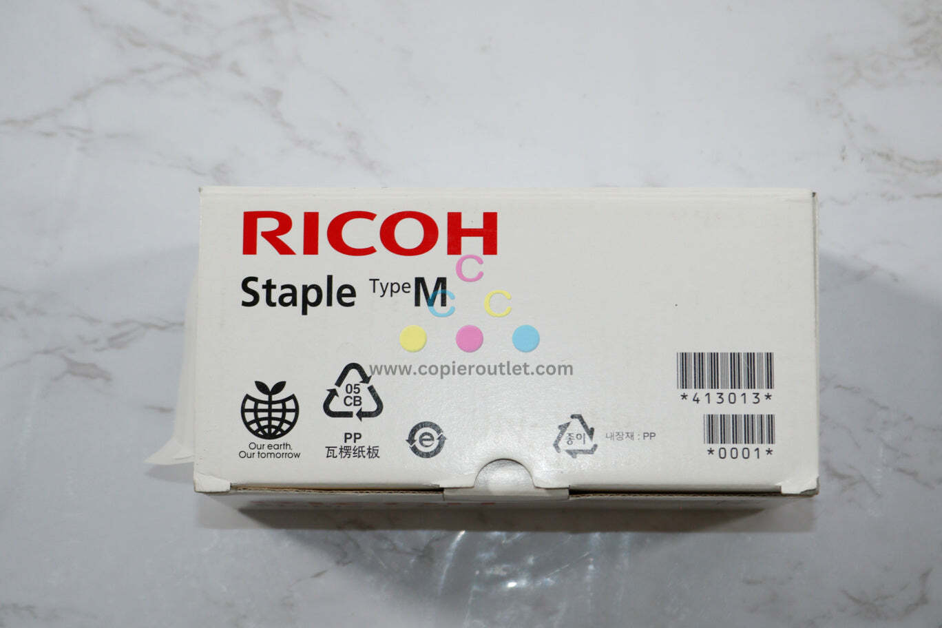 Genuine Ricoh Type M /413013 Staples Cartridge ( 5,000 Staples Per Cartridge ) For Ricoh SR4110, SR5000, SR5020 SR5030, SR5040, SR5050, SR5060 New! Same Day Shipping!!! For faster shipping service, please send us a message or contact us. Copier Clearance Center Copier Clearance Center was established in 1993. We buy and sell both domestically and internationally and have wide assortment of used copiers, fax machines and printers of all brands, All of our copiers are in house and available for your inspection. They all have been tested and rated for functions, cosmetics and overall appearance. We also sell genuine accessories of all popular brands, Our accessories include toners, imaging units, developers and copier parts such as fax board, fixing unit, fuser unit, roller, cleaning brush, drum blades etc. For more detailed information on our current inventory of Copiers and Accessories all potential buyers or their representatives are welcome to give us a call. We are more than happy to assist you with the pricing and guide you to find the copiers you wish to buy. Best Regards, On-Line Sales Team Copier Clearance Center Business Hours (Pacific Time): Monday-Friday: 9:00 am to 5:30 pm Copier Clearance Center Promo Video - YouTube Video will open in a new windowUsing the App? Paste link into a browser window: [isdntekvideo] All product and company names are trademarksTM or registered trademarks of their respective holders. Use of them does not imply any affiliation with or endorsement by them.