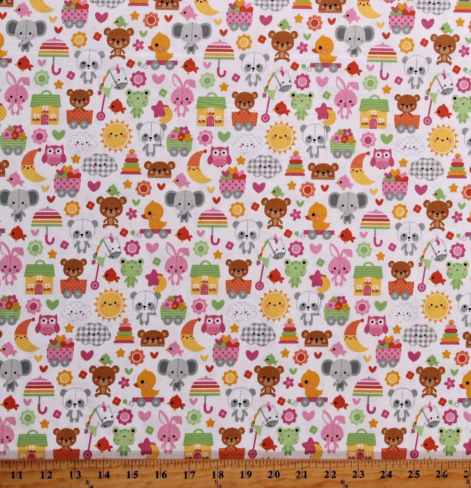 Cotton Bundle of Joy Kids Children Animals Fabric Print by the Yard D777.54