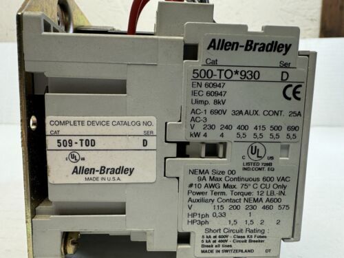 Allen Bradley - 509-TOD Starter - Control Voltage: 110/120V 50/60 Hz