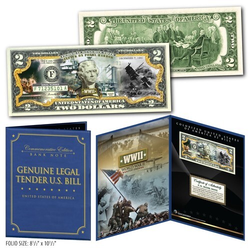 This uncirculated $2 Bill is Genuine Authentic Legal Tender of the United States, which has been enhanced with beautiful colorized images of Lucille Ball commemorating her 100th Birthday. The full colorized images are accomplished through a revolutionary new authentic genuine colorization process pioneered by The Merrick Mint. Included is a Certificate of Authenticity to guaranty that your bills are authentic and recognized by every monetary authority around the world, and assuring its Collector Edition status.