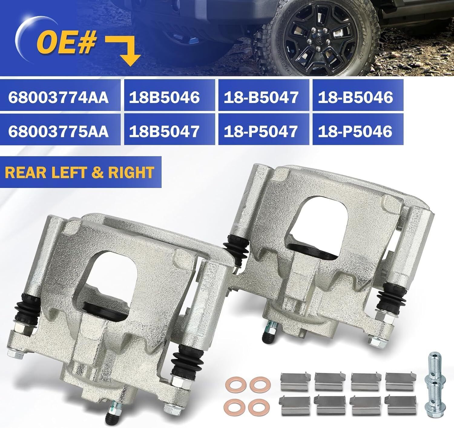 18B5046 18B5047 Rear Left Right Disc Brake Caliper Assembly with Bracket for 07-17 Jeep Wrangler,18 Wrangler JK,08-12 Jeep Liberty/07-11 Dodge Nitro Replaces# 68003774AA, 68003775AA
