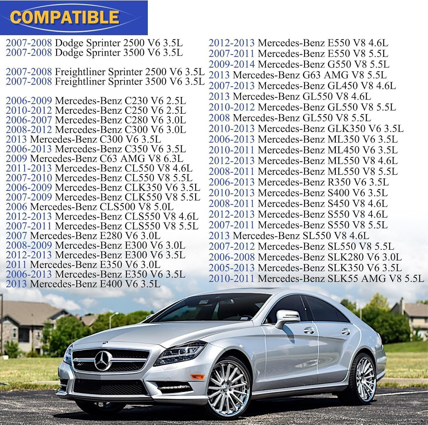 ?Compatible with Mercedes-Benz: 06-09 C230?10-12 C250?06-07 C280?08-12 C300?2013 C300?06-13 C350?2009 C63 AMG?11-13 CL550 4.6L?07-10 CL550 5.5L?06-09 CLK350?07-09 CLK550?2006 CLS500?12-13 CLS550 4.6L?07-11 CLS550 5.5L?2007 E280?08-09 E300 3.0L?12-13 E300 3.5L?06-13 E350?2013 E400?12-13 E550 4.6L?07-11 E550 5.5L?09-14 G550 5.5L?2013 G63 AMG?07-13 GL450?2013 GL550?10-12 GL550?10-13 GLK350. Please check the second main picture to confirm ignition coil spark plug whether compatible with your car. ?Compatible with Dodge Freightliner Mercedes-Benz Models: 2007-2008 Dodge Sprinter 2500?2007-2008 Dodge Sprinter 3500?2007-2008 Freightliner Sprinter 2500?2007-2008 Freightliner Sprinter 3500?06-13 ML350?10-11 ML450?12-13 ML550 4.6L?08-11 ML550 5.5L?06-13 R350?10-13 S400?08-11 S450?12-13 S550 4.6L?07-11 S550 5.5L?2013 SL550?07-12 SL550 5.5L?06-08 SLK280?05-13 SLK350?10-11 SLK55. Please check the second main picture to confirm ignition coil spark plug whether compatible with your car. ?Excellent Function: A faulty ignition coil spark plug may result in engine misfire, rough engine idle, decrease in power, poor fuel economy etc. Every component either matches or improves on the OE design to ensure fast and easy installation with superior performance and reliability. to provide superior cold-start performance and a smoother running engine. ?High-quality: The spark plug is double iridium spark plug, have a much longer working life, can work 100000 kilometers, consistent and stable spark. The ignition coil made of premium quality materials, stainless-steel spring with internal ferrite noise suppressor prevents radiofrequencyinterference, advanced thermoplastic coilconnector ensures proper connectionand resists fractures causedby heat and thermai cycling, to better transfer the high voltage created by the engine?s spark plug. ?OE# UF535, 95983, C1656. Package included: Ignition Coil Packs x6, Double Iridium Spark Plug x6. Not included instruction manual, easy to install. ?After-Sales Service: We offer 24 hours customer service and 1 year product service, If you are encounter product installation, product quality and other problems, please feel free to contact us.