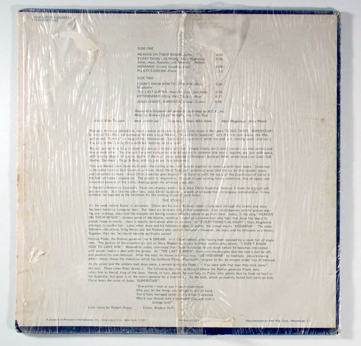 Still in ORIGINAL SHRINK-WRAP (opened). Vinyl plays with some crackles and a few light-clicks (play-graded). Cover looks great; a couple creases near edges; sections of shrink missing and no scuffing (front/back); slight discoloration with darker discoloration spots. Inner-sleeve is generic white. Spine has no text and shows wear. Shelf-wear along top/bottom-edge and corners. Split in shrink near center of top/bottom-edge. Opening is crisp with signs of light use and a few divots. (Not a cut-out.)