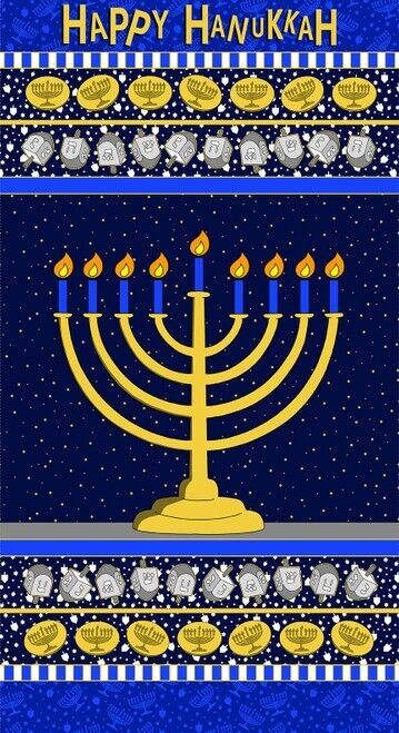 24" X 44" Panel Festival of Lights Happy Hanukkah Cotton Fabric Panel D507.54