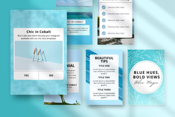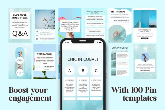 Stunning Blue Theme: Immerse your followers in a calming, consistent blue color scheme perfect for any niche or brand.