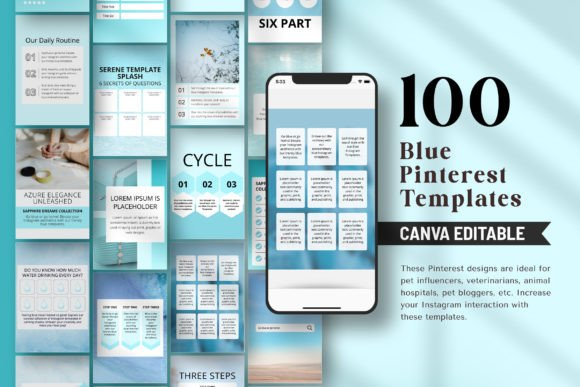Elevate your Pinterest profile with our breathtaking 100 Editable Blue Pinterest Canva Pins Templates!