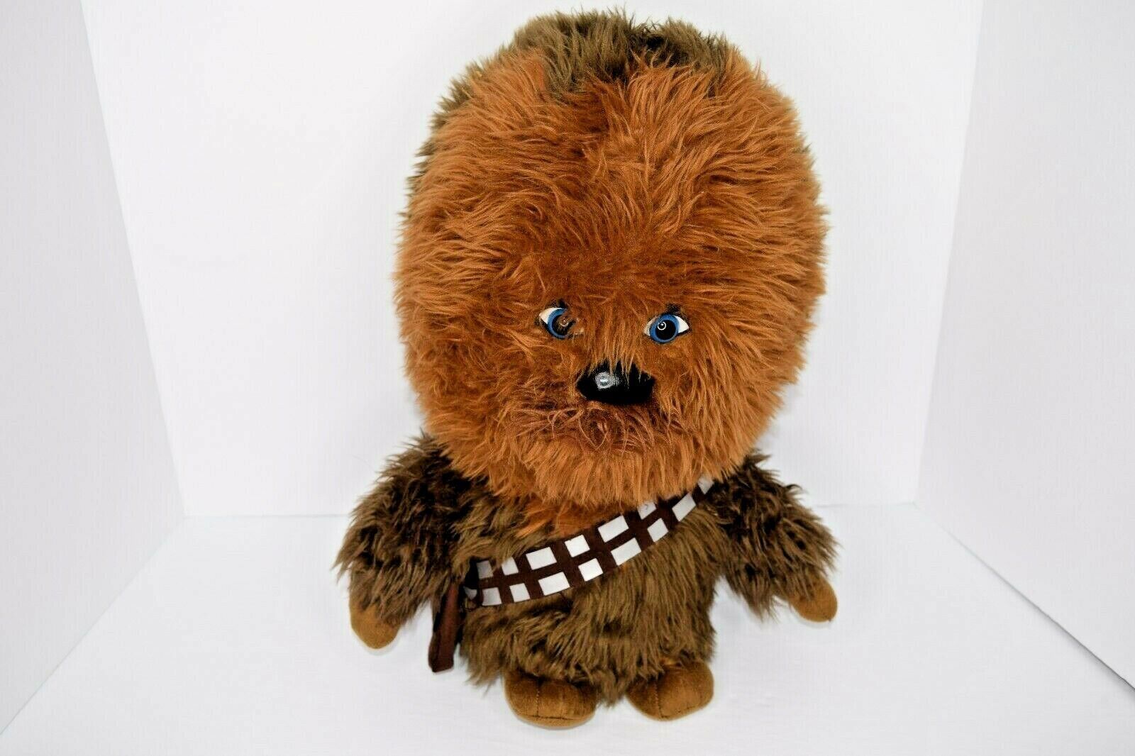 Star Wars Chewbacca Big Head Plush 15" Stuffed Toy Collectible. Used in Good Condition. It has a battery pack that makes it talk and it sometimes does, may just need a new battery. No rips or tears. Has a 3 marked on the tag. See all photos for details and condition. Comes from a smoke free, pet friendly home. Will ship USPS Priority Mail.