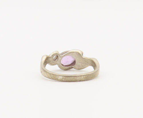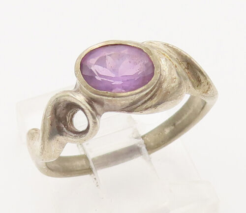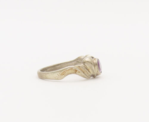 925 Sterling Silver Vintage Ring Designer Carved Oval Amethyst Sz 6.5 RG27908
