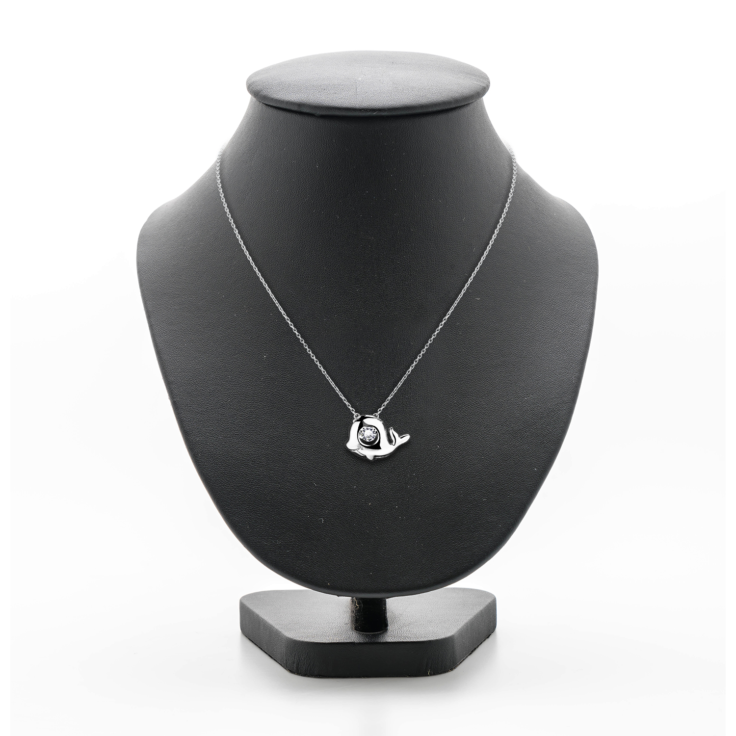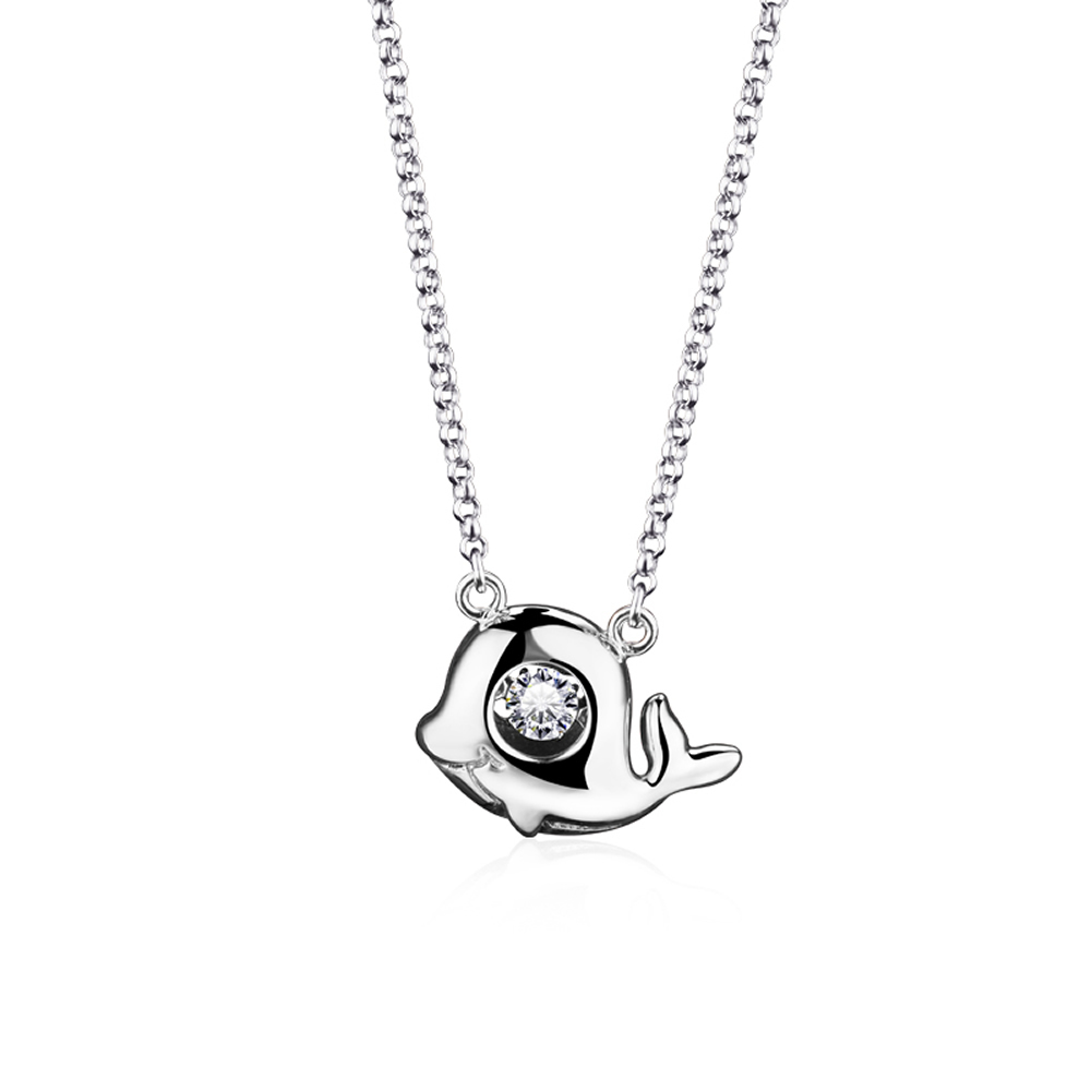 925 Sterling Silver Platinum Plated Cubic Zirconia Fish Pendant (0.43ct)