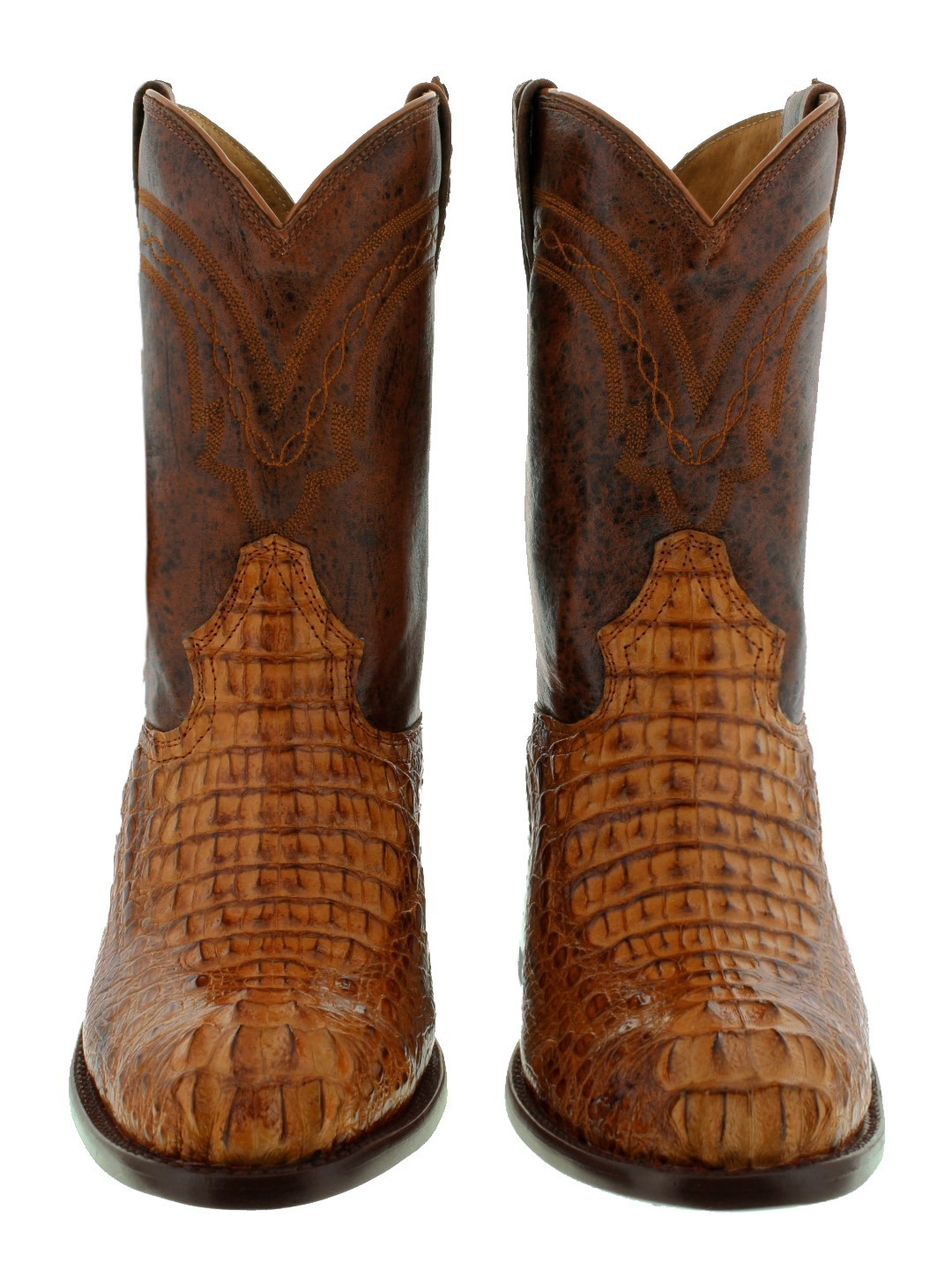 Mens Cowboy Western Boots Real Crocodile Skin Cognac Roper Size 10.5, 12-13.5