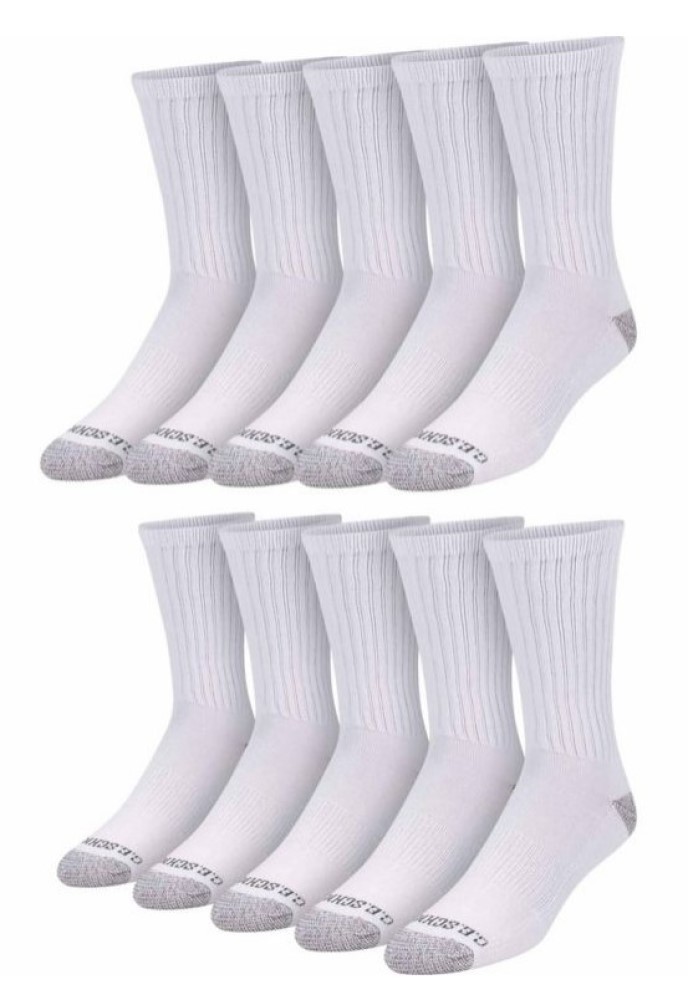 Crew style Smooth toe seam Reinforced heel and toe 10-Pack Color: White
