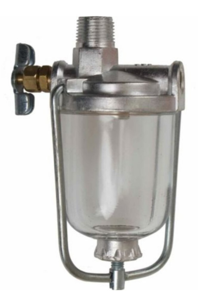 Strainer assembly Large bowl Allis Chalmers Tractors: WC, WF, WD45D, D15D, D17, D19, D21, 180, 170, all late models and diesels Massey Ferguson Tractors: MF135, MF150 (Continental gas only), MF165, MF175, MF180 Industrials: 20, 30, 50, 202 204 (late model), 302 (s/n 119701046 and up), 304 (s/n 119751024 and up), 356 (late model), 2135, 3165 Sediment bowl weight: .65 lb. 3/8 in. NPT male inlet 1/8 in. NPT female outlet 2-1/4 in. long sediment bowl