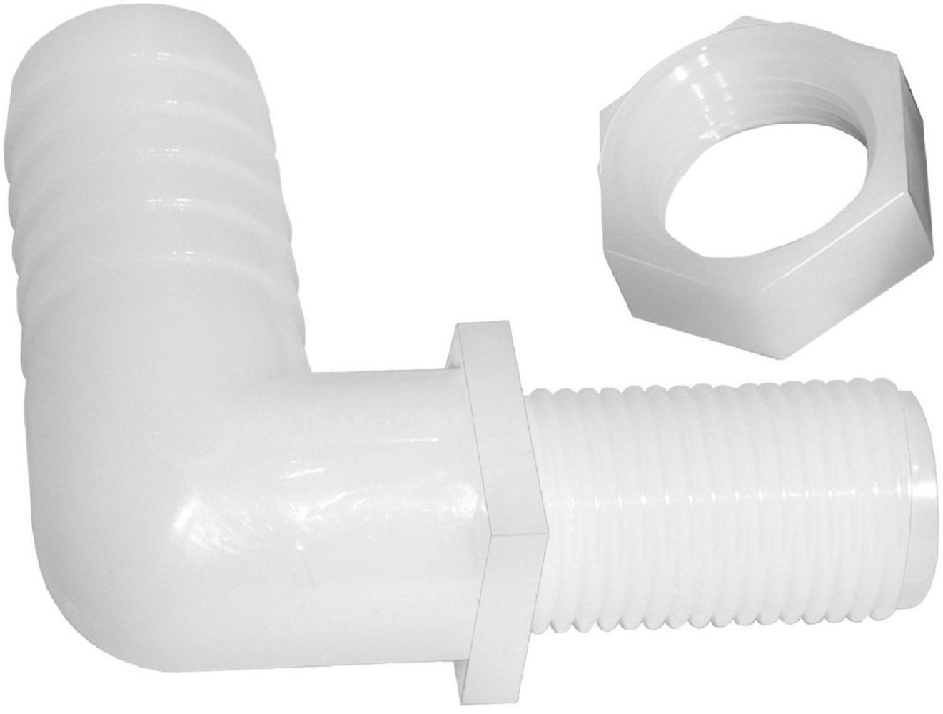 Comes with 11/16 UN x 3/8 in. hose barb thread Nylon construction is durable and resistant to chemicals Equipped with a hex nut for convenience Comes in a pack of 2 nozzle fittings Used on the terminating ends of a spray boom NSF61 and NSF372 certified nozzle fittings Handles up to 75 PSI operating pressure Ideal for use in a variety of agricultural, plumbing and industrial liquid-handling solutions Made in the U.S.A. Manufactured in sizes ranging from 1/8 in. to 3 in. Offered in a variety of thread and hose shank combinations