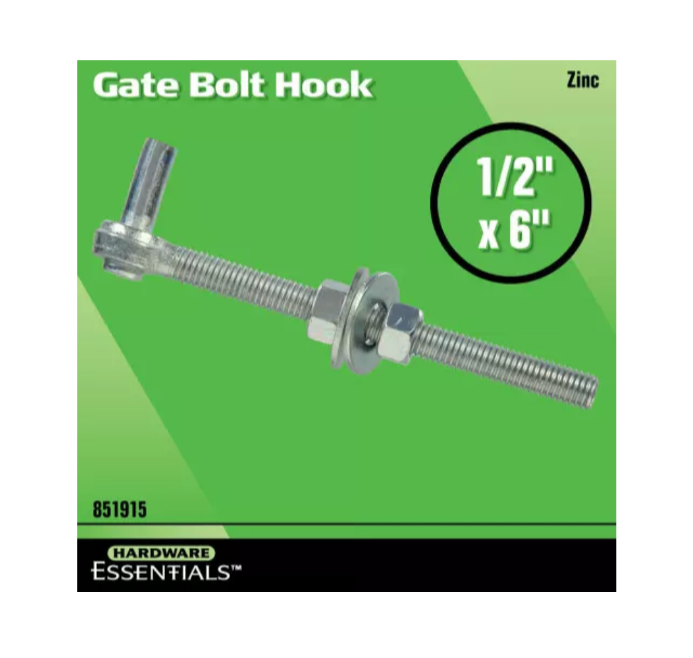 Hardware Essentials 851915 Zinc-Plated Gate Bolt Hook, 1/2 in. x 6 in.