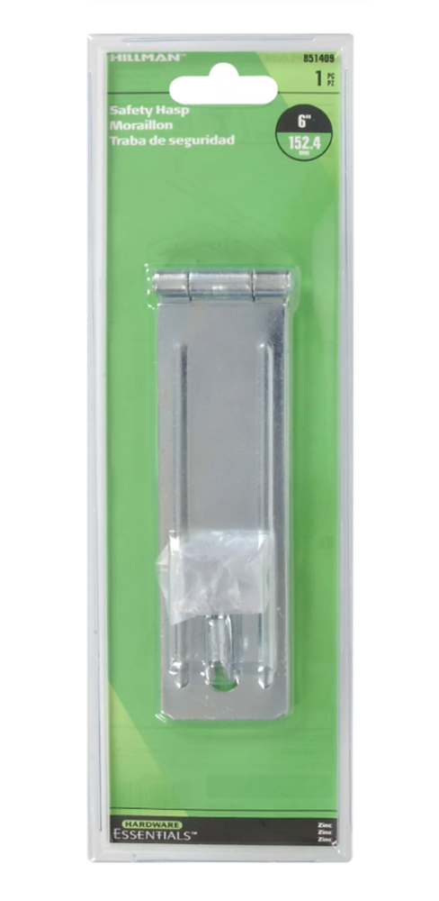 Hardware Essentials 851409 Fixed Non-swivel Staple Safety Hasp, Zinc, 6 in.