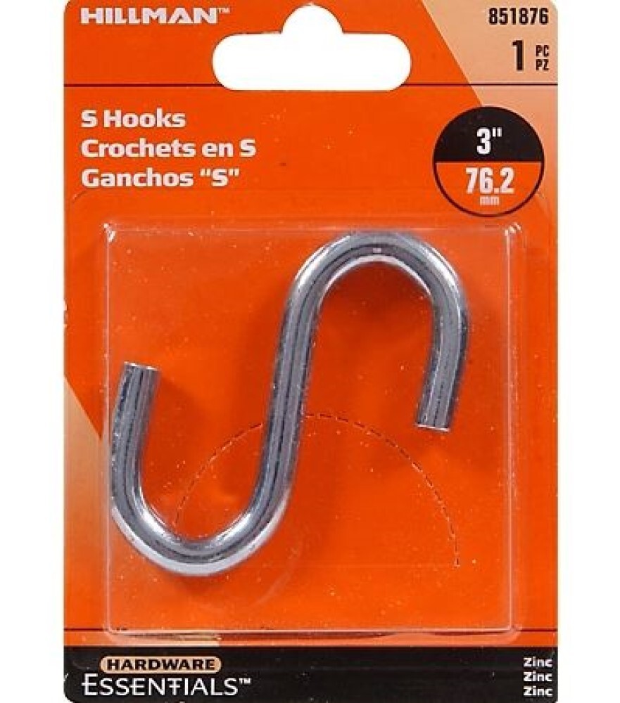 Hillman Hardware Essentials 851876 Zinc S-Hook, 0.307" x 3", Load Up to 120 lbs.