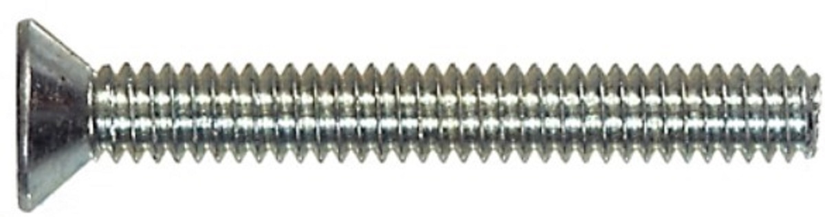 Flat-head machine screws and nuts are used in conjunction with one another in order to fasten metal parts together securely. To ensure proper fit and quality of life, make sure to use the Hillman Metric Flat-Head Phillips Machine Screw with nuts of similar thread size and finish. Fasten the machine screw with a screwdriver to reduce risk of over-tightening.