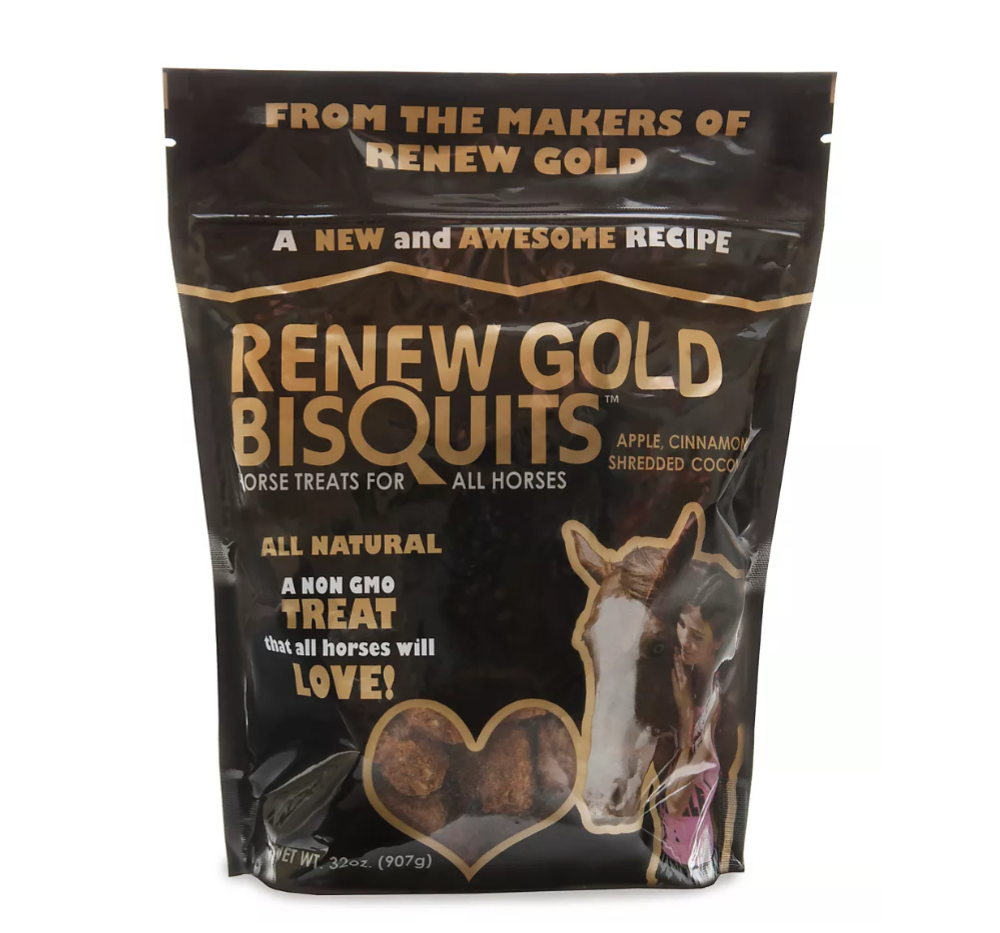 Renew Gold Biscuit Horse Treat from Renew Gold is a non-GMO treat your horses will love. Baked to perfection with apple cinnamon and shredded coconut. Made from the highest quality, all-natural feed ingredients; high fat stabilized rice brand and shredded coconut to help support cool energy. Includes flax for Omega 3 fatty acids and natural anti-inflammatory support. Designed to support all types of horses at any stage of life.100% Satisfaction Guaranteed