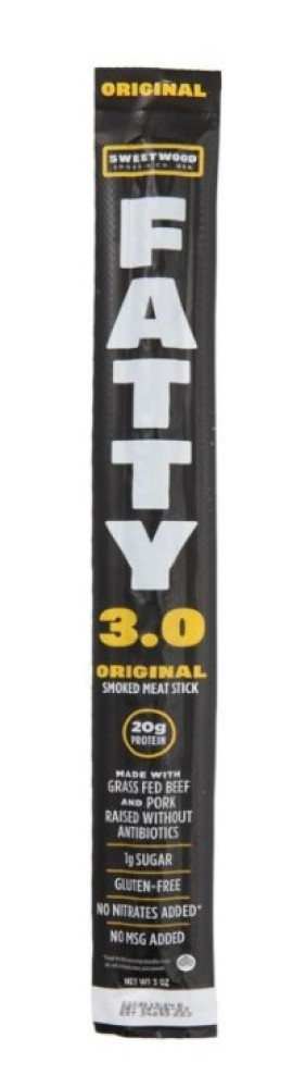 The OG big meat stick just got bigger with our FATTY 3.0. With a whopping 20g of high-quality protein, the FATTY 3oz Original is a low sugar protein packed supersized snack for active appetites. Slow smoked with 100% real hickory wood and carefully seasoned, FATTYs deliver bold meaty flavor on the go. Individually wrapped and with better-for-you ingredients like grass-fed beef, antibiotic-free pork and all-natural seasoning, our jerky snacks are the best beef sticks for hiking, road trips, working out, or whenever you need serious fuel. And they're American made without any BS, like gluten, nitrites, nitrates, MSG, artificial colors or flavors, making the FATTY 3oz Original a healthy snack you can feel good about bringing with you on any adventure.