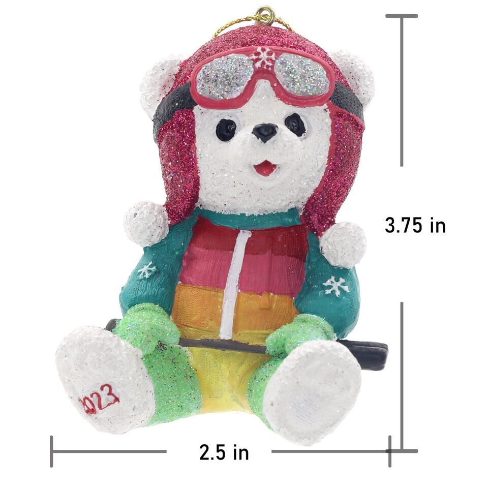 The holiday season is upon us let?s get to decorating and show off your holiday decorating style with our Holiday Time 3.75in Christmas Snowflake Teddy Ornament, Girl. This poly snowflake teddy bear ornament features hand painted red ski hat and goggles, with colorful ski vest. Complete with matching mittens and painted pants with a 2023 date stamp on the right paw. Our decorative ornament will make the perfect addition to your tree or even use it as a decor piece paired with another Holiday Time decor and matching Holiday Time plush. Spread holiday cheer and turn your home into a winter wonderland with our Holiday Time 3.75in Christmas Snowflake Teddy Ornament, Girl.
