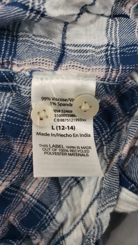 Time and Tru Women's Button Front Long Sleeves Soft Shirt Blue Size L (12-14)