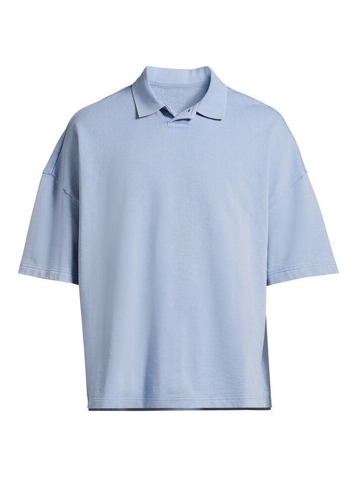 No Boundaries Men's Oversize French Terry Polo Shirt, Chambray Size M (38-40)