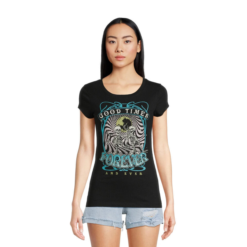 Wound Up Juniors Forever Skeletons Short Sleeve Graphic T-Shirt, Black Size XXL(19)