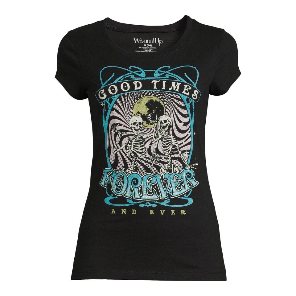 Wound Up Juniors Forever Skeletons Short Sleeve Graphic T-Shirt, Black Size M(7-9)