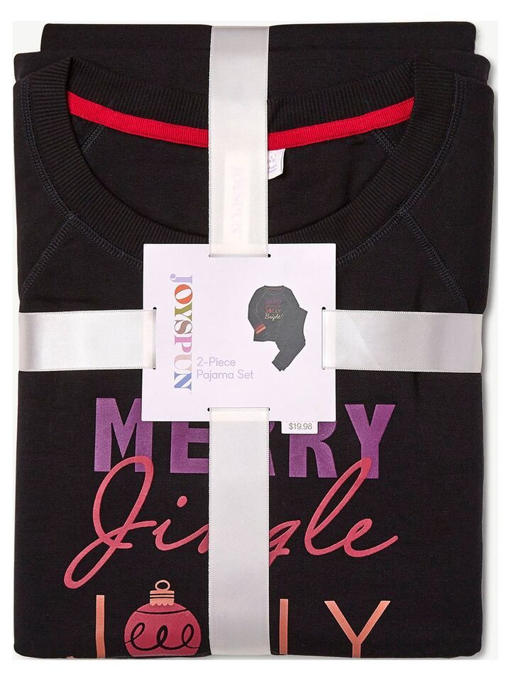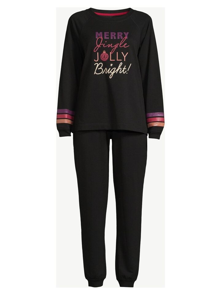Joyspun Women's French Terry Holiday Pajama Gift 2-Pcs Set Black Size S (4-6)