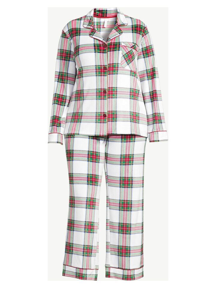 Joyspun Women's Plus Velour Plaid Knit Pajama 2-Pcs Set Multicolor 3X (22W-24W