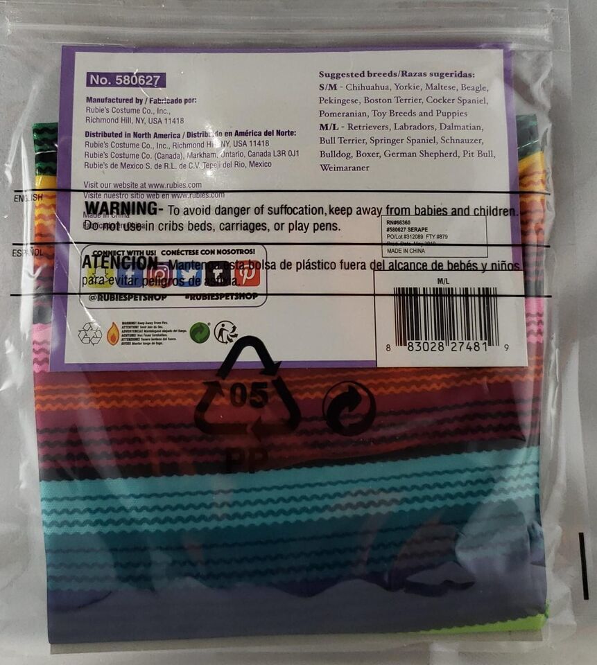 Rubies Pet Shop Dog or Cat Halloween Serape Costume Multicolor Size S/M