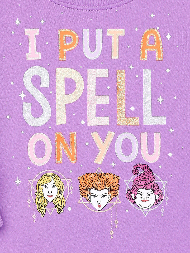 Disney Hocus Pocus Girls Halloween Glitter Fleece Sweatshirt Purple M (7-8)