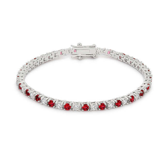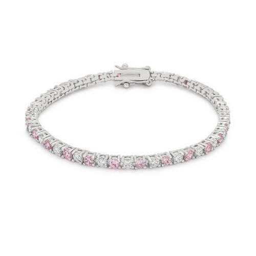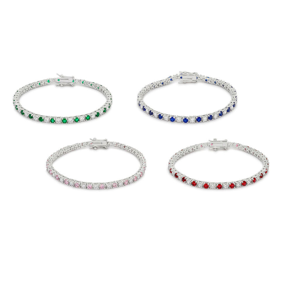 Silvertone Rhodium Plated Brass Colorful 3mm CZ 7" Ladies Tennis Bracelet