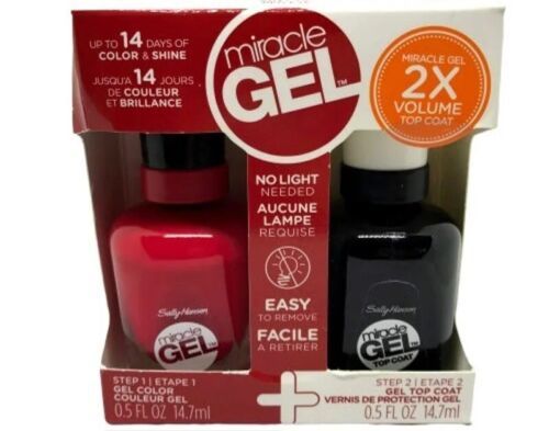 Sally Hansen Miracle Gel Red Eye Color Top Coat Nail Polish Duo Set Kit 501 470