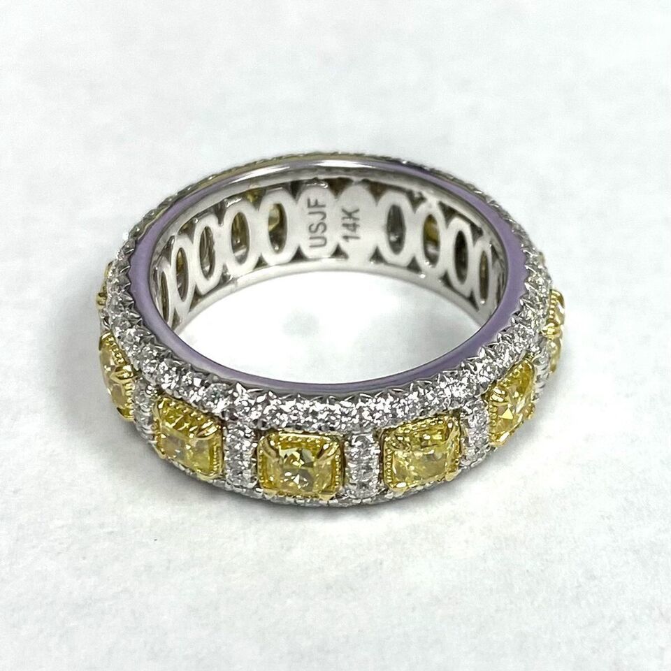 4.01 CT Natural Fancy Yellow Cushion Diamond Wedding Eternity Band 14k Gold