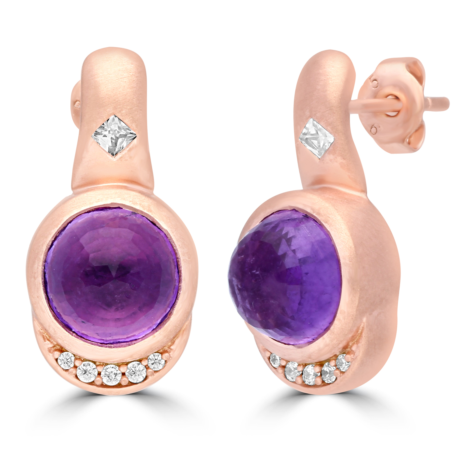 Finest Material :- Selene Round shape Amethyst and Cubic Zircon Drop Earrings for women is charmingly crafted in 925 Sterling Silver Rose Gold Plated. The rich shades of amethyst gemstone measures about 8 x 8 mm and hanging length is 0.37 inches. The earrings has push back closure. With their lush design, these earrings add a feminine accent to any style. Pair them with your casual or formal attire.