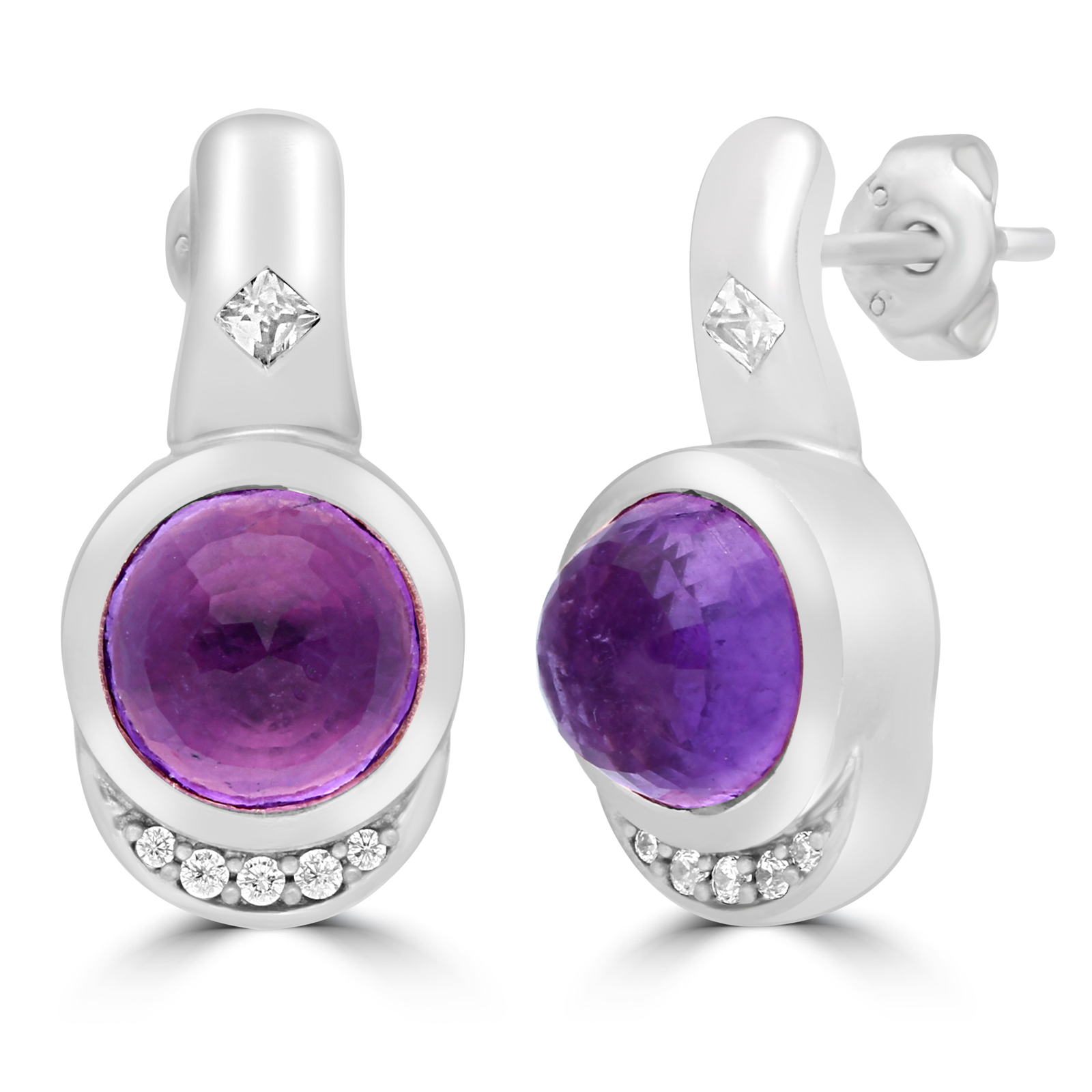 Finest Material :- Selene Round shape Amethyst and Cubic Zircon Drop Earrings for women is charmingly crafted in 925 Sterling Silver White Gold Plated. The rich shades of amethyst gemstone measures about 8 x 8 mm and hanging length is 0.37 inches. The earrings has push back closure. With their lush design, these earrings add a feminine accent to any style. Pair them with your casual or formal attire.