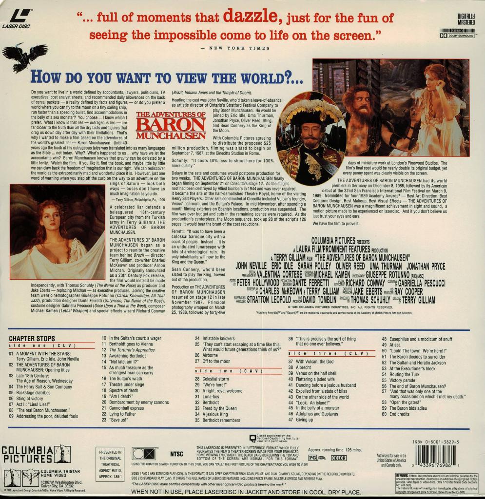 This is a previously viewed LASERDISC of the rare fantasy classic THE ADVENTURES OF BARON MUNCHAUSEN, staring: