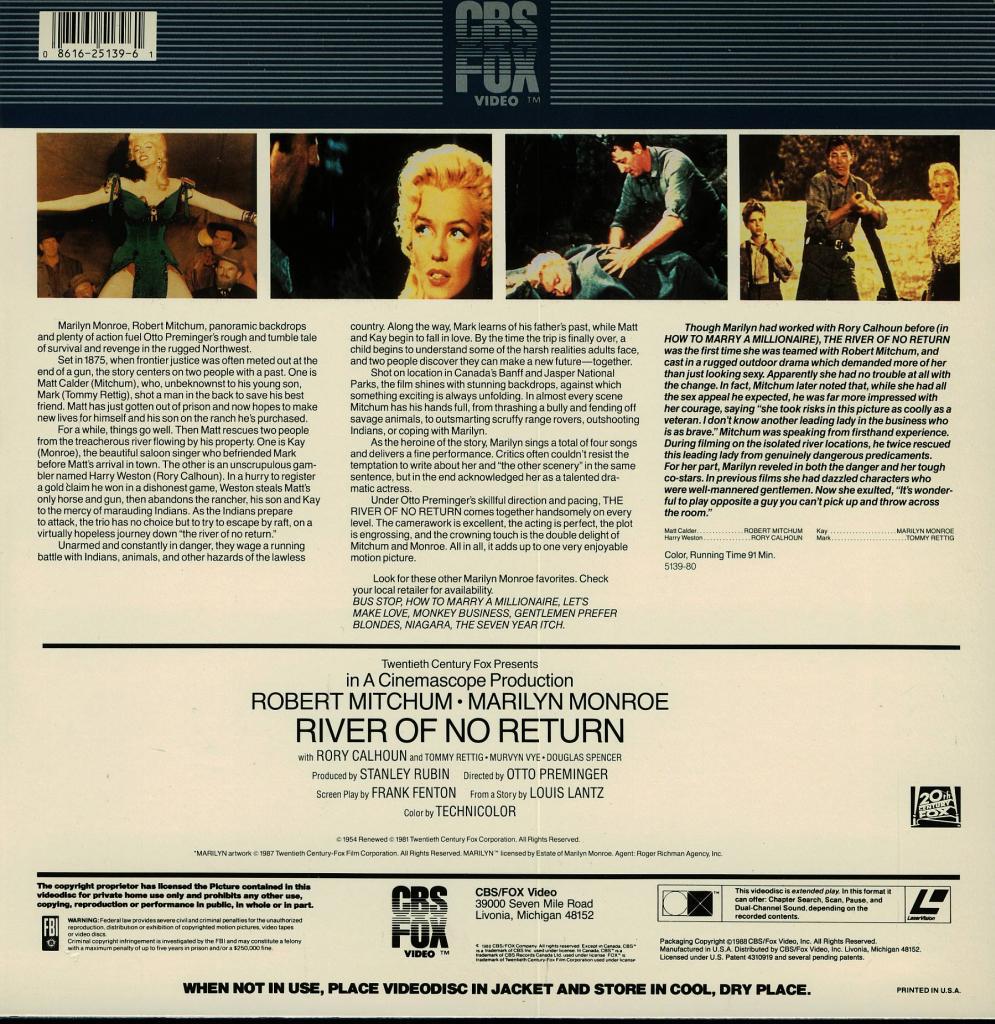 RIVER OF NO RETURN MARILYN MONROE LASERDISC RARE
