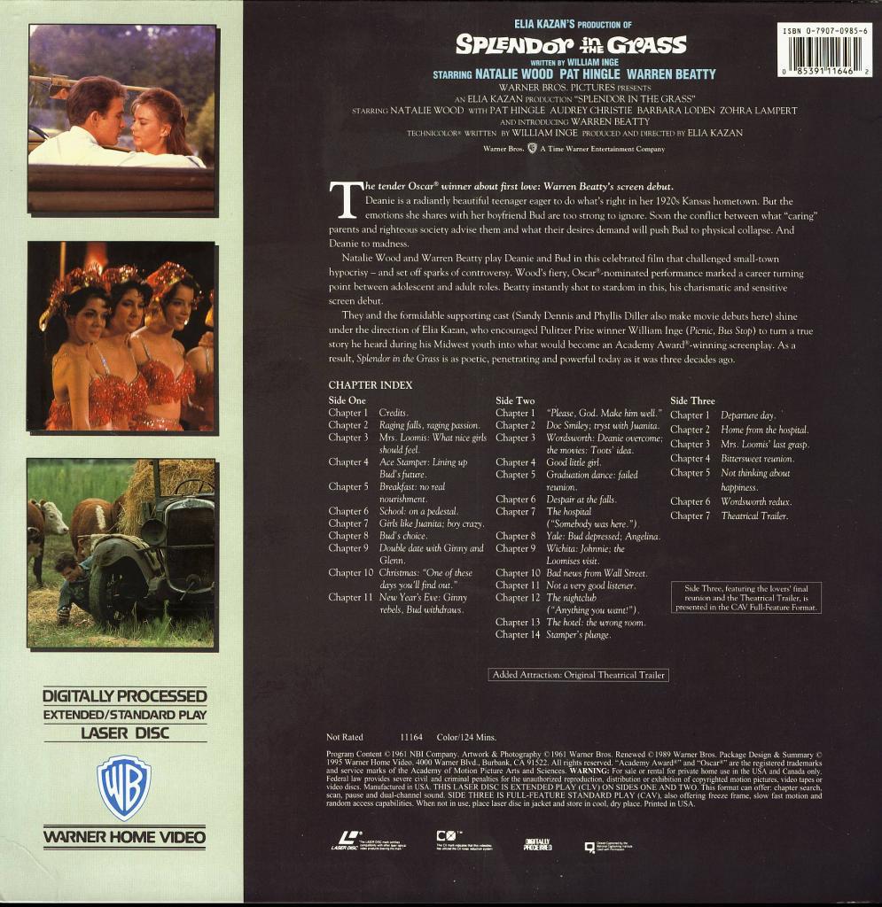 This is a previously viewed LASERDISC of the rare classic romantic drama SPLENDOR IN THE GRASS, staring: