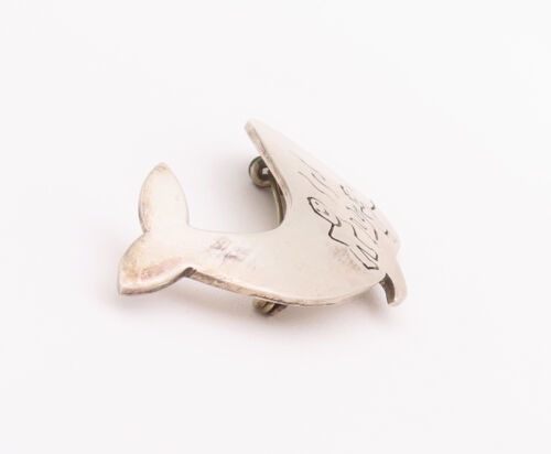 925 Sterling Silver Vintage Brooch Pin MEXICO Happy Etched Delphine BP10737
