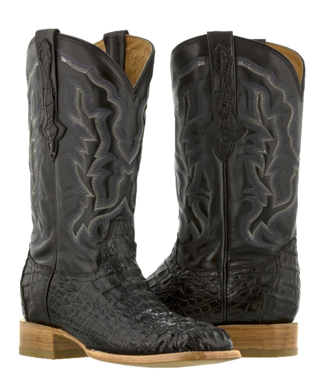 Mens Cowboy Western Boots Real Crocodile Skin Black Square Toe Size 12.5
