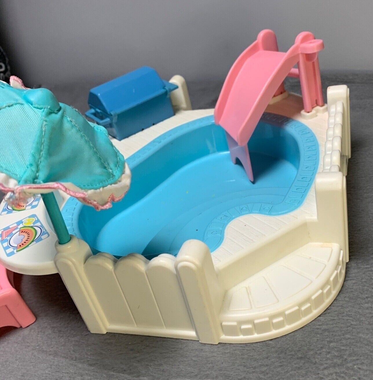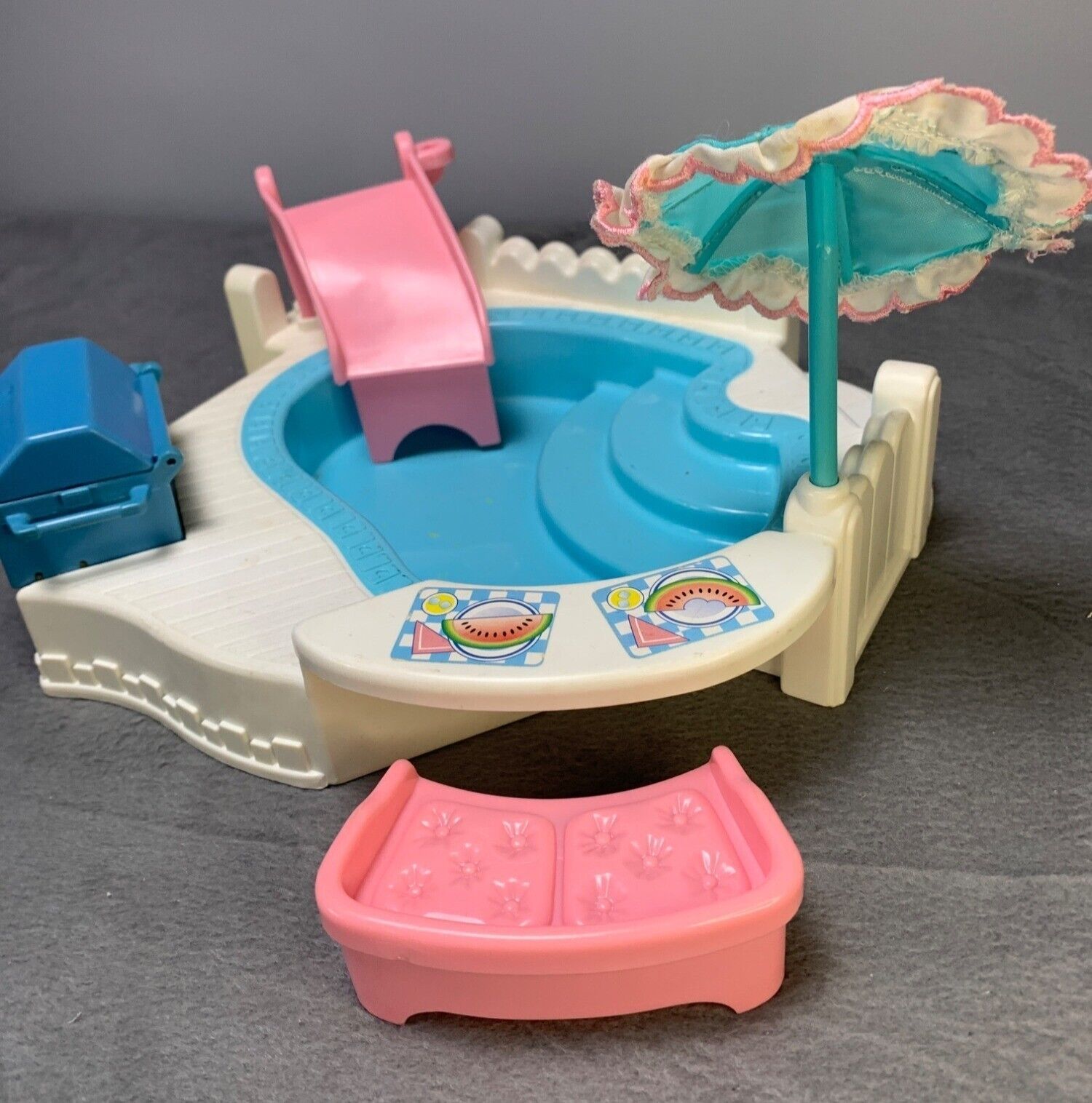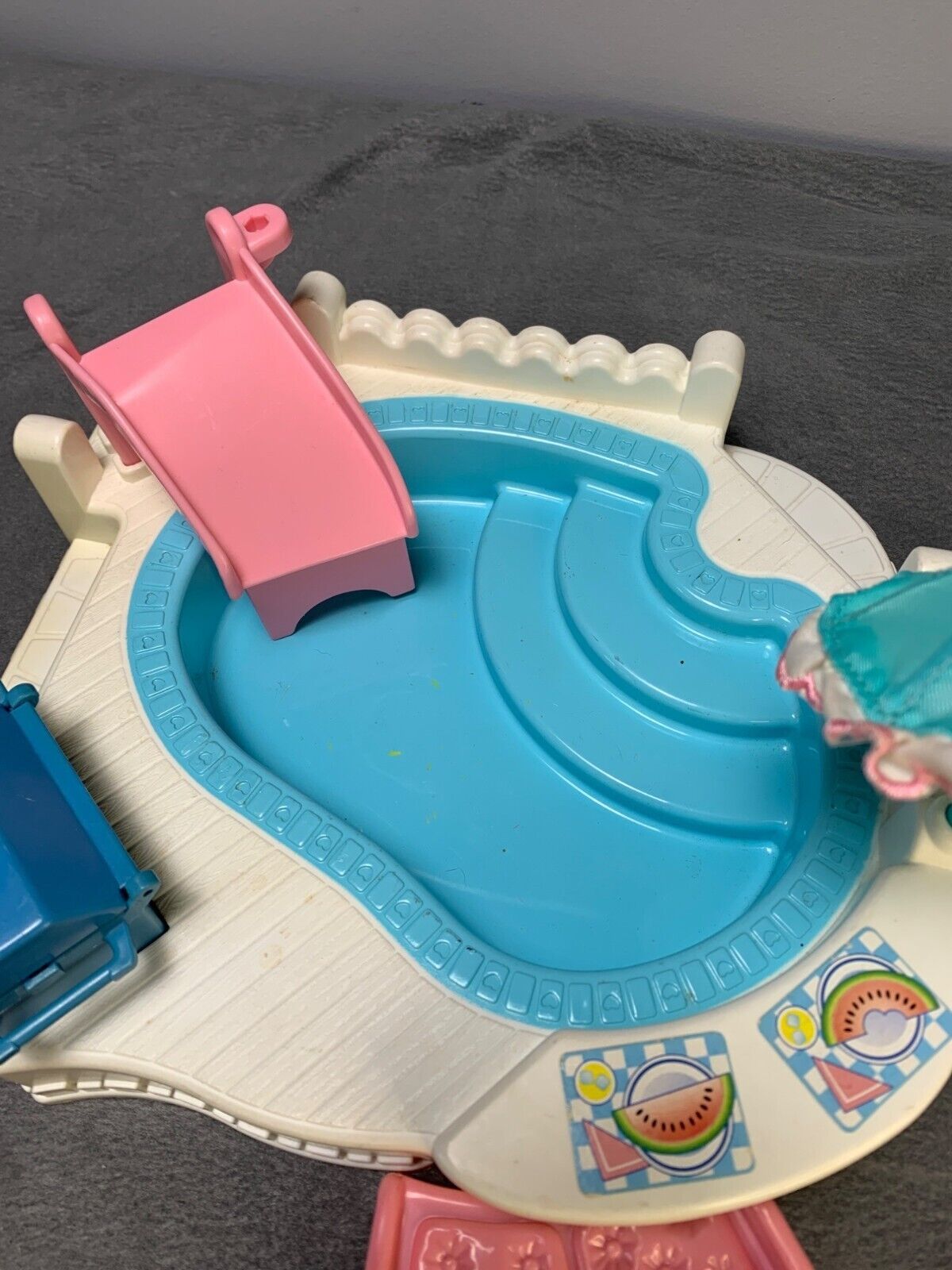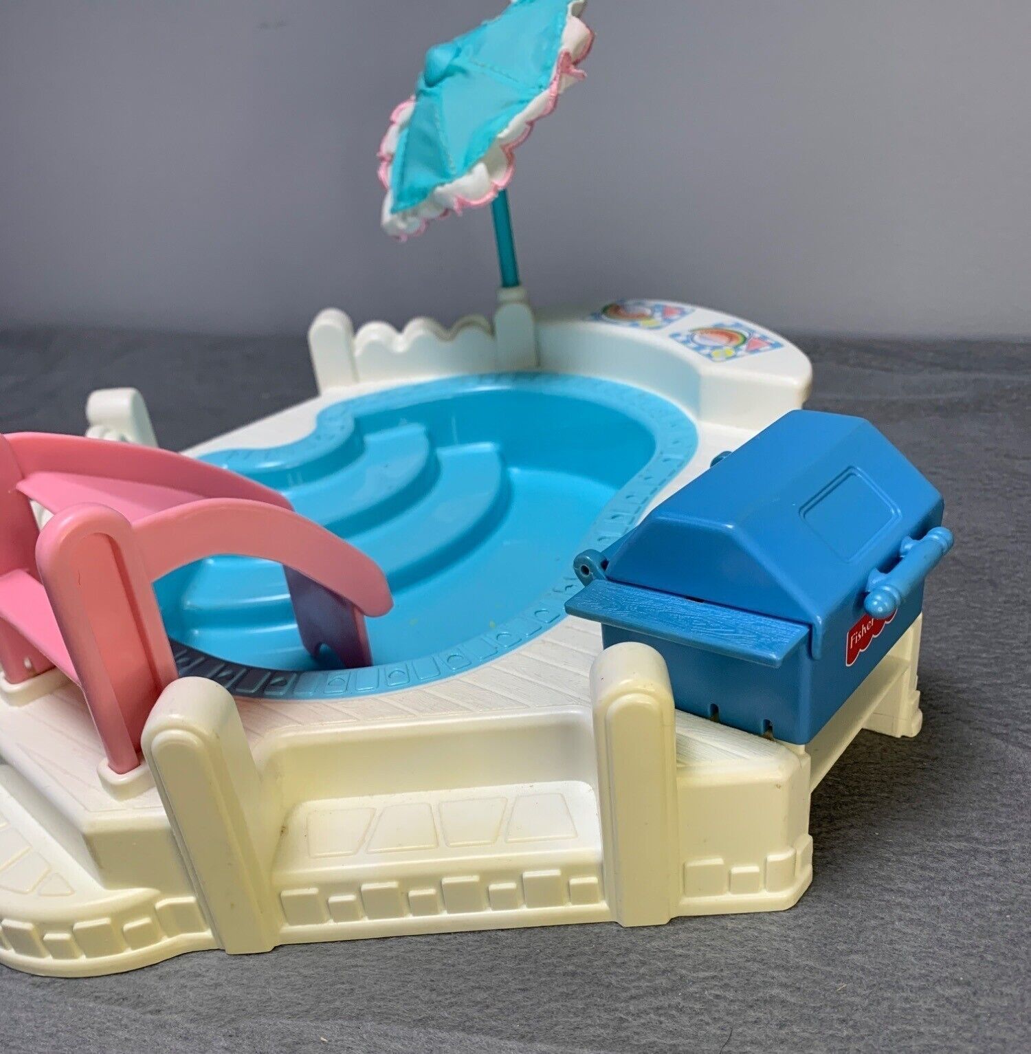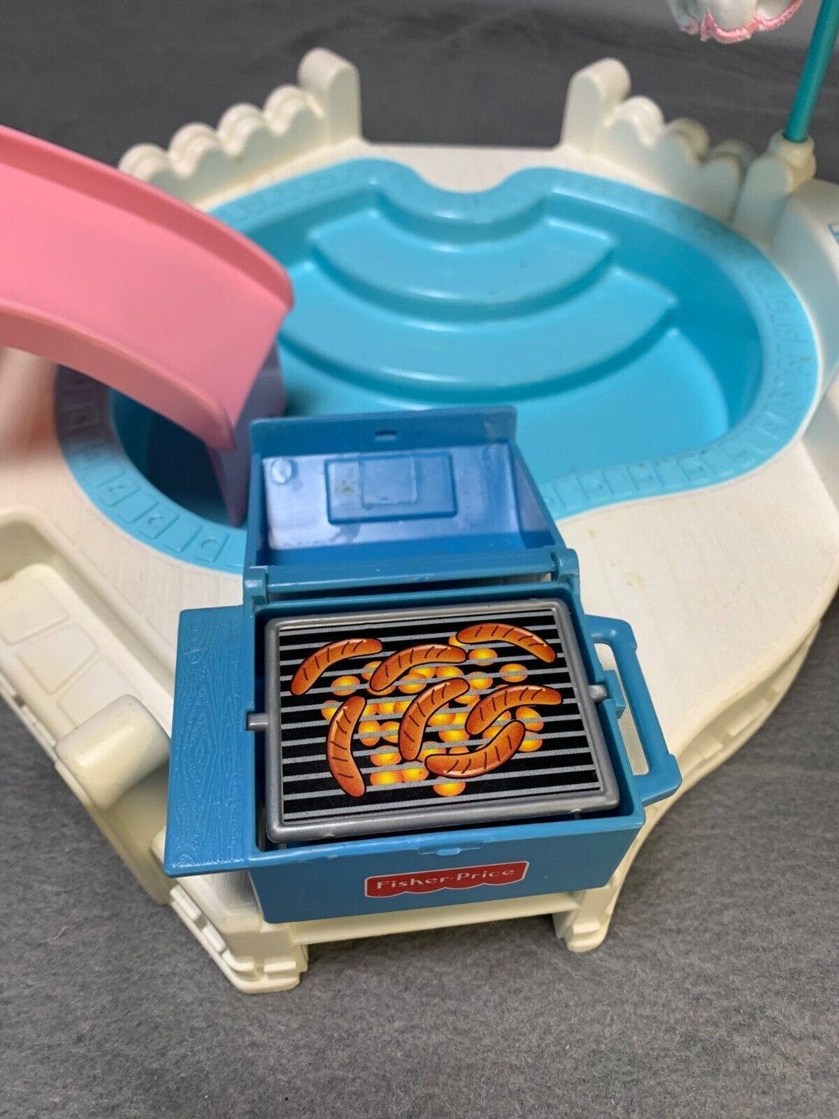 Fisher-Price Loving Family 1995 Vintage Dollhouse Pool Set with Slide Grill