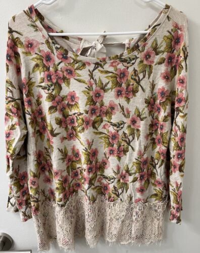 NWT Disney Snow White By Lauren Conrad Large Floral Blouse Lace Hem & Tie Back